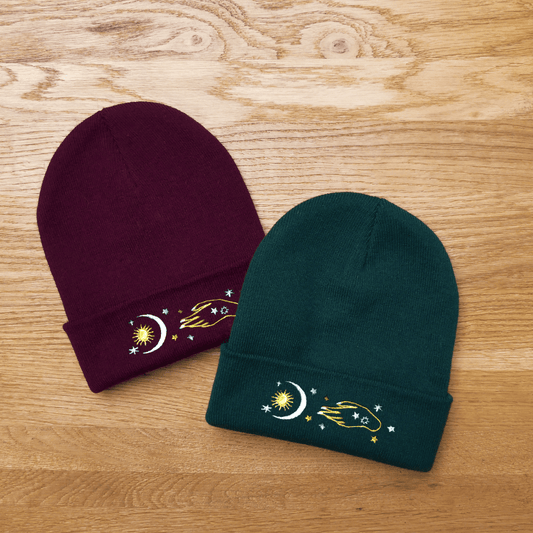 Celestial Sun, Moon & Stars Embroidered Beanie